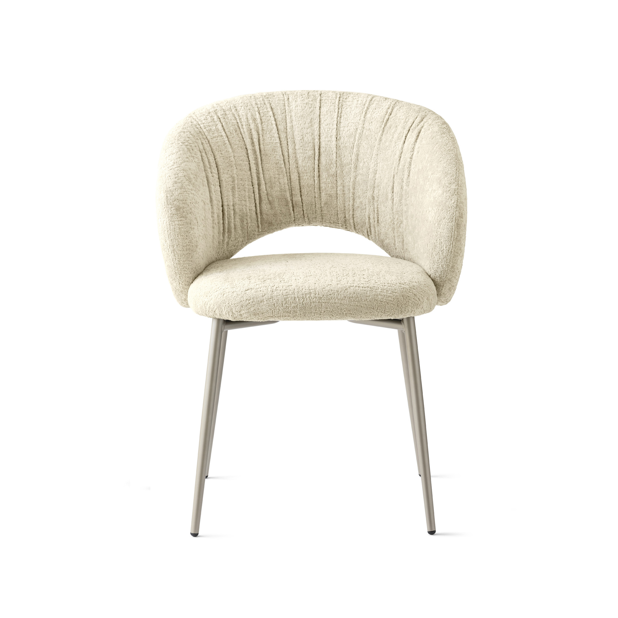The slim metal frame in Pearl Beige (P46M) gives the chair a light, modern look, while the neutral tone allows it to integrate seamlessly into both modern and classic dining interiors. The seat upholstered in Hemp fabric (T2H) adds a natural, warm texture that pairs beautifully with ceramic, wood, or glass dining tables.