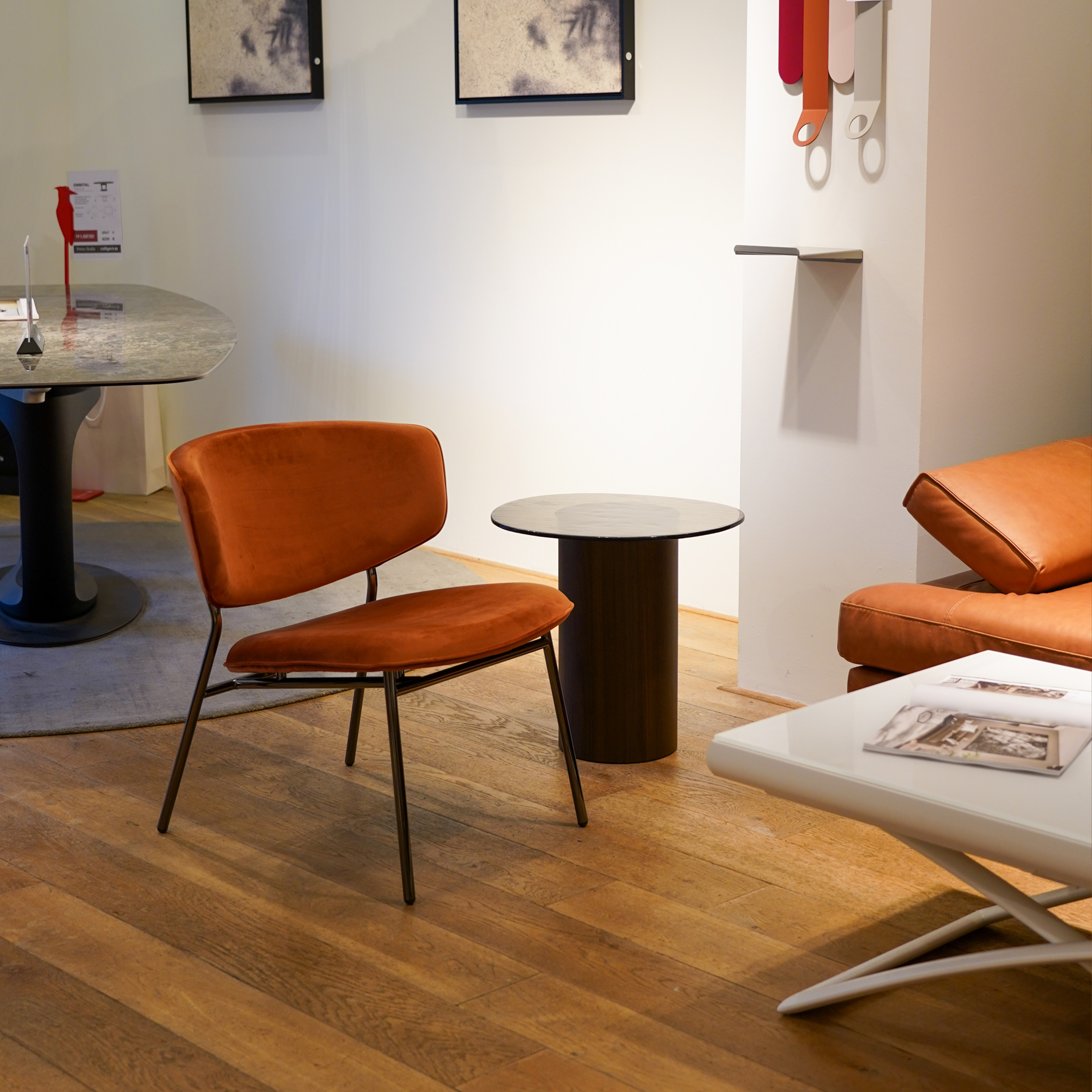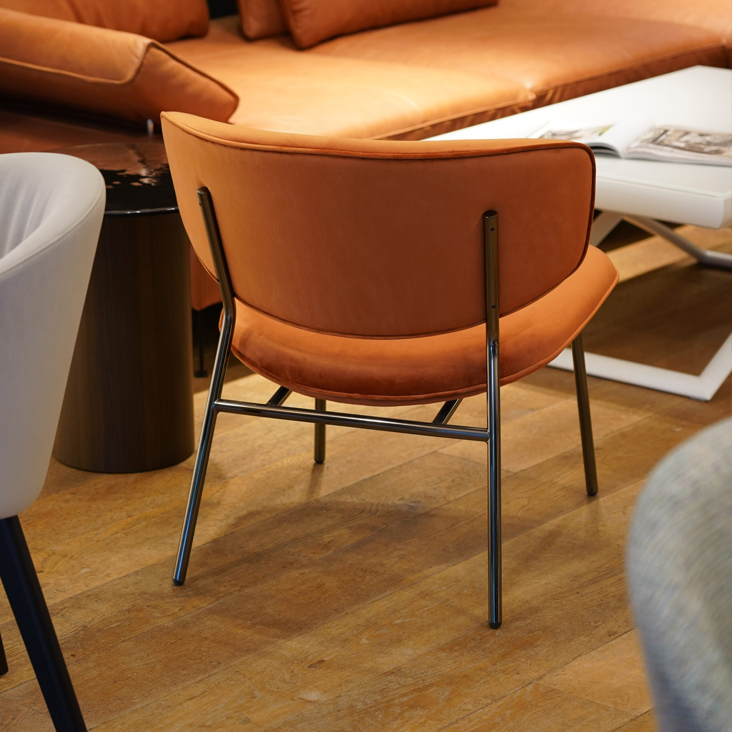 A part of the FIFTIES-style family, the lounge armchair is an iconic ‘50s piece with a large inviting chair seat and a metal frame counterpointed by the generous padding.