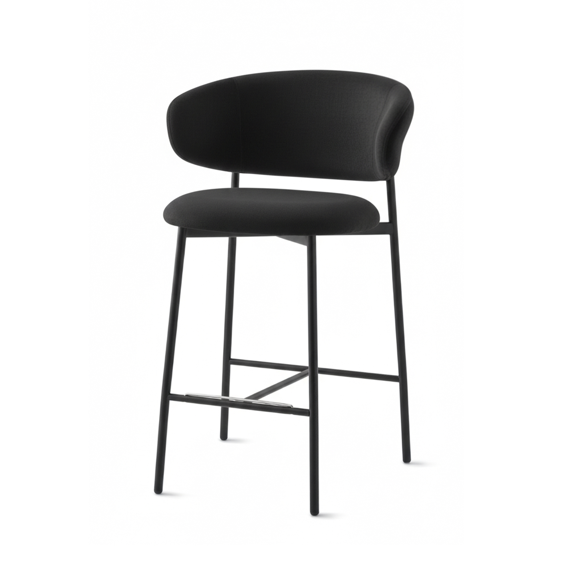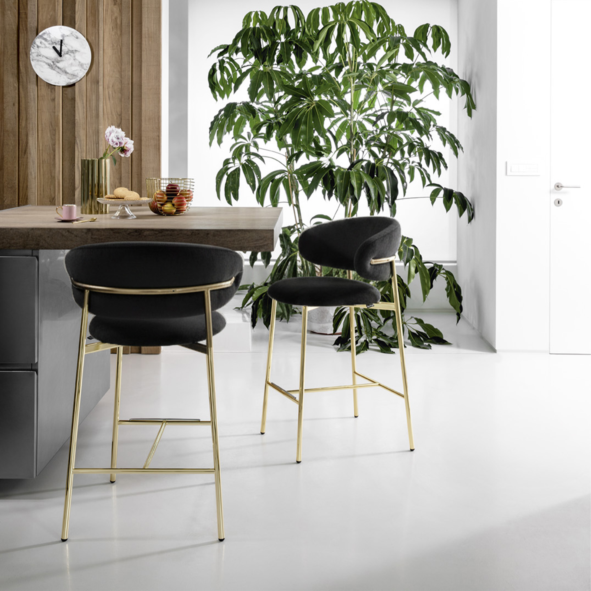 This model is ideal for kitchen islands and counter-height tables thanks to its practical seat height of 67 cm. The clean metal base keeps the silhouette light and modern, while the upholstered seat adds warmth and comfort to the space.