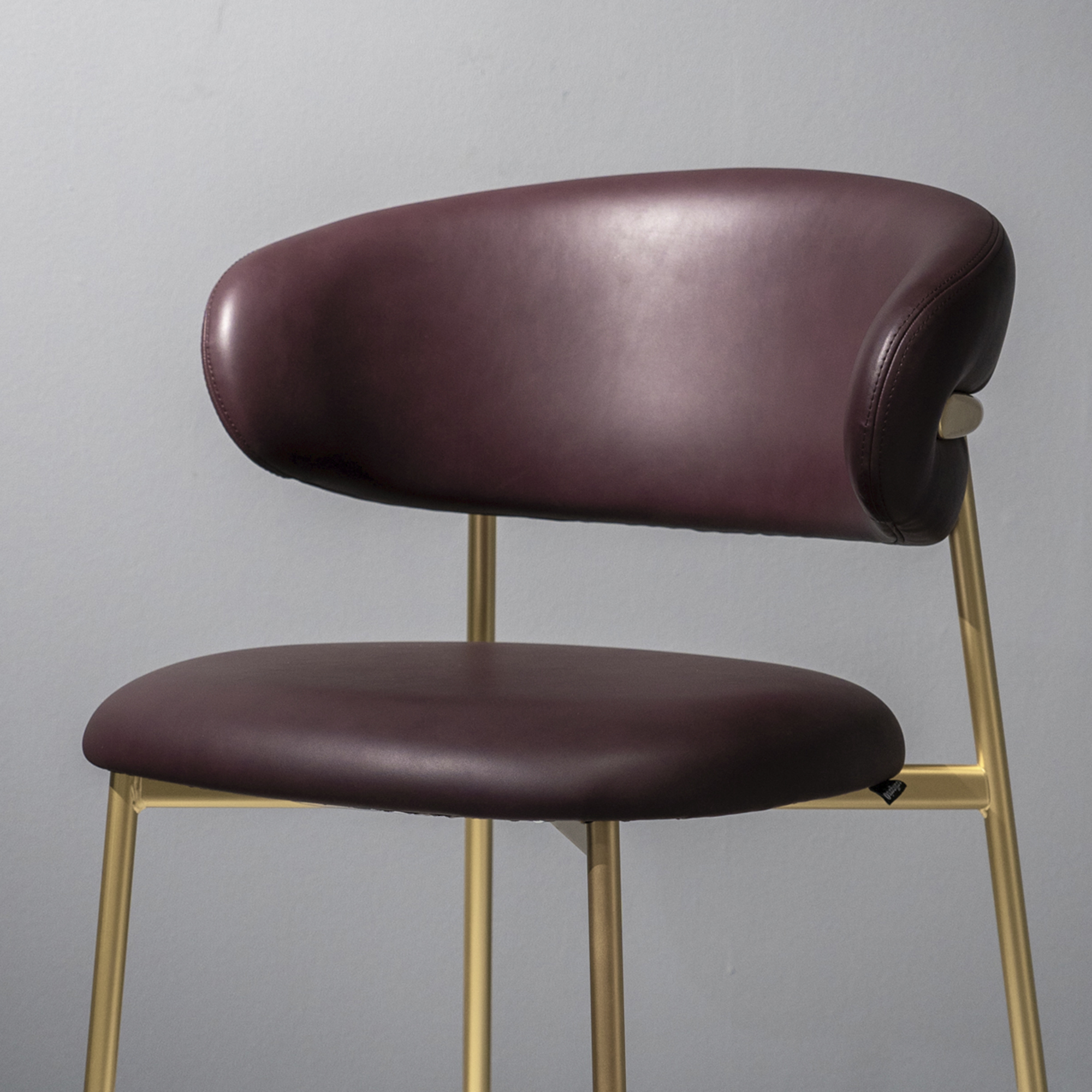The Oleandro metal Calligaris stool stands out for its soft, welcoming seat and sculpted backrest. The upholstery enhances comfort during long dinners or casual breakfasts, while the slim metal legs create a modern architectural feel.