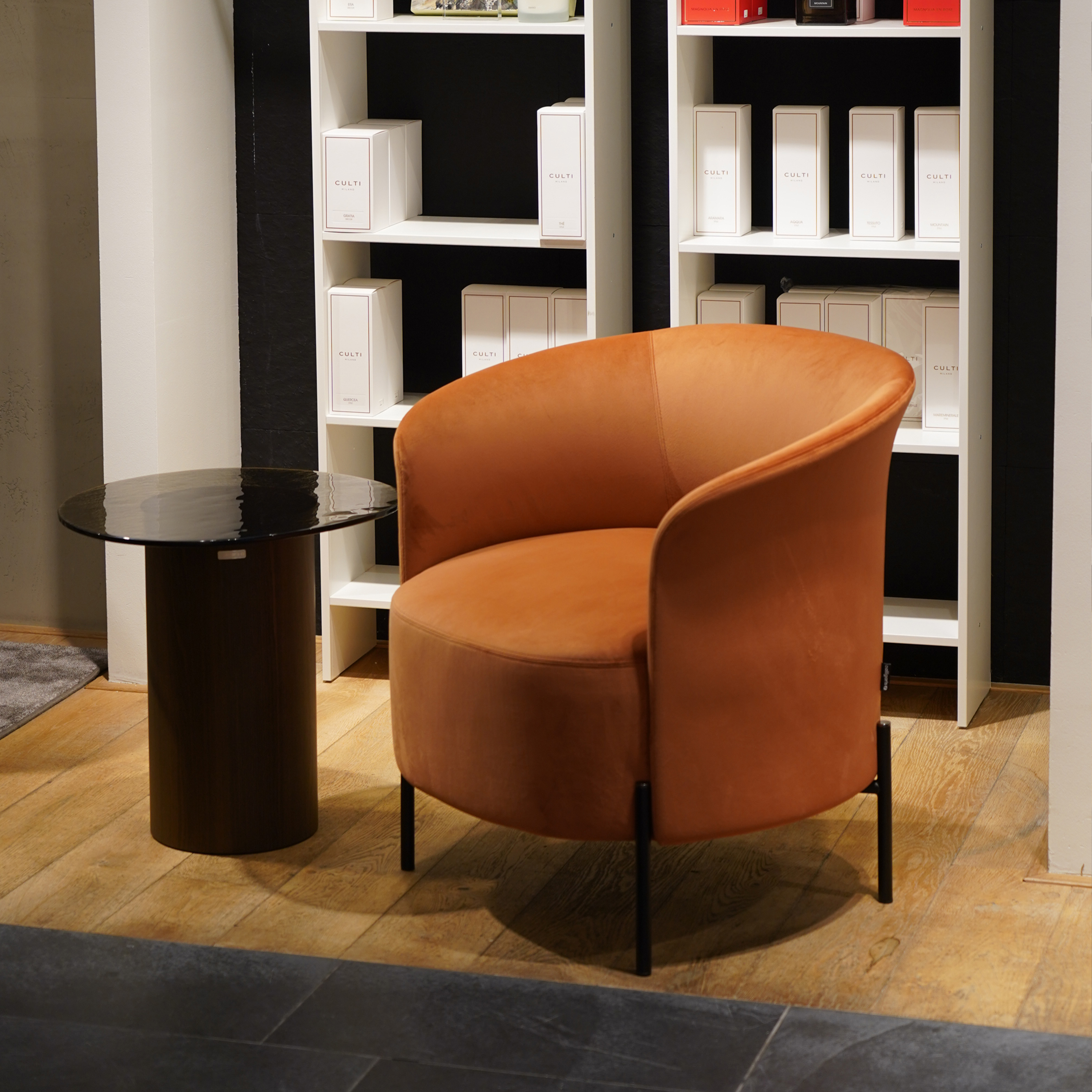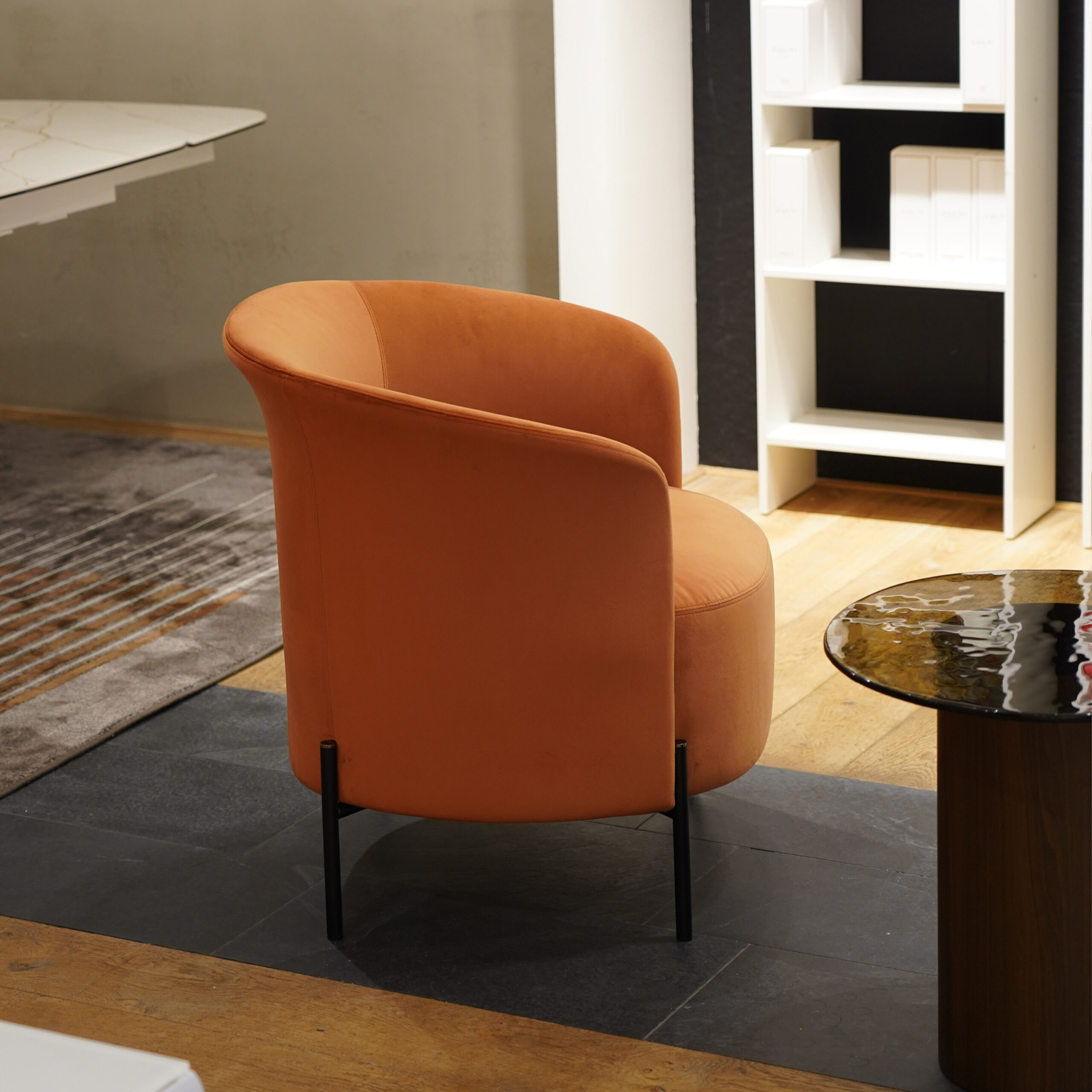 A compact armchair with an elegant shape reminiscent of a calla lily, Rendez Vous is a conversation armchair, as the name suggests.