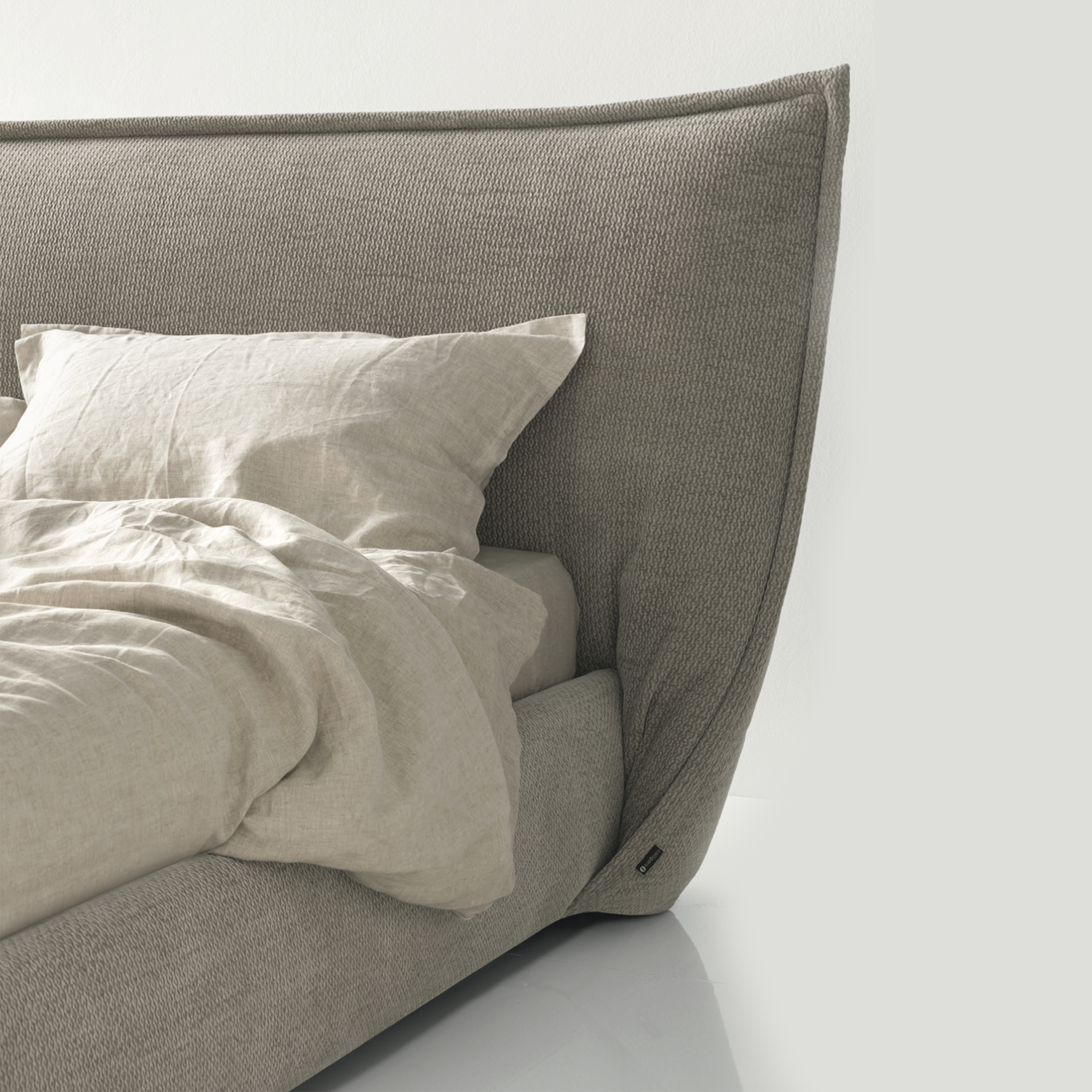 Softly double bed with fully removable fabric cover. The soft comfort of this bed is a pleasure to relax in. A soft large padded headboard is the distinguishing feature of the Softly bed which ensures day-to-day lounging without any need to forego elegance.